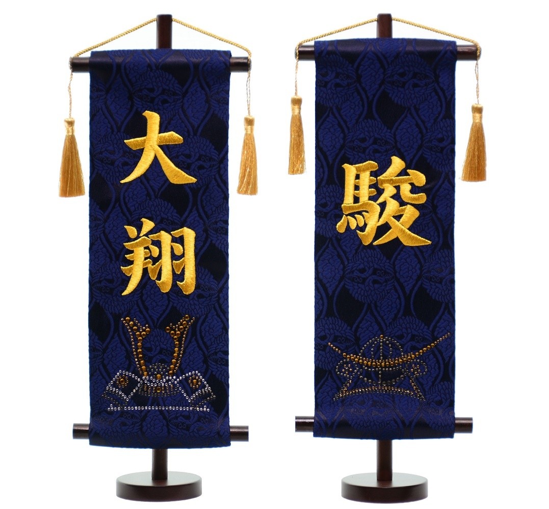ラインストーン名前旗 刺繍 台付きセット 鍬形兜/政宗兜 旗サイズ30cm 【五月人形】【男の子】【節句】