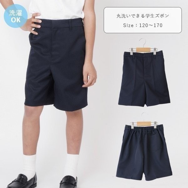 丸洗いできる学生服 ハーフパンツ 半ズボン フォーマル 男の子 小学生 中学生 冠婚葬祭 通学 120 130 140 150 160 紺/濃紺/ネイビー 120-160cm 16100 [CT-12]