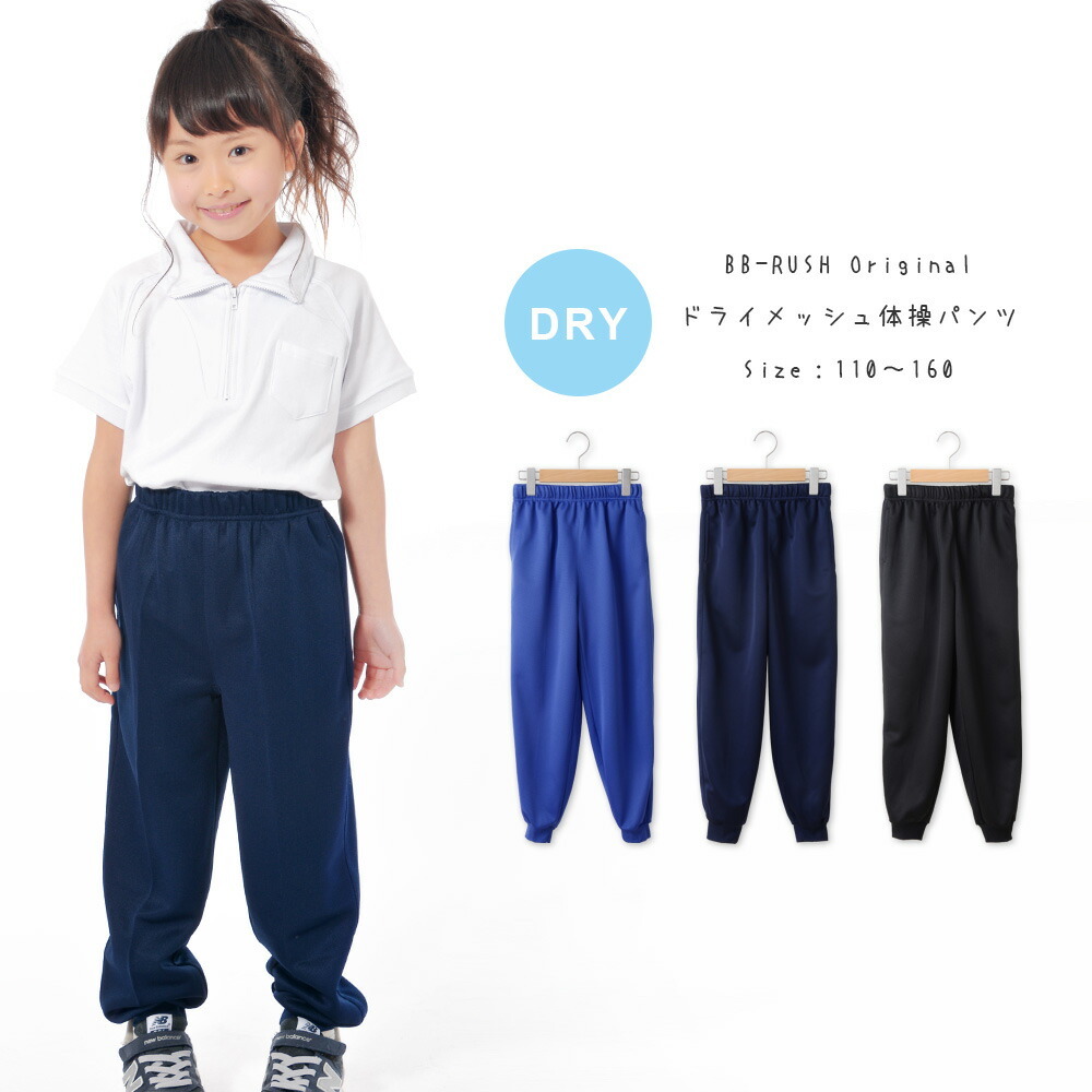 体操服 吸汗速乾ドライメッシュジョガーパンツ体操服 体操ズボン 体操パンツ 男の子 女の子 110 120 130 140 150 160 170 黒/紺/青 110-170cm gz-96 [BB-01]