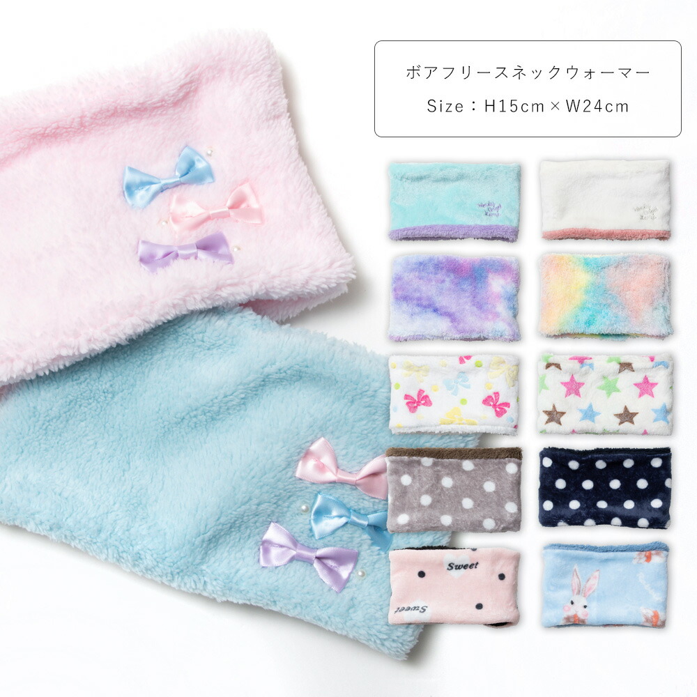ネックウォーマー キッズ 女の子 ボア フリース 子供 子ども ガールズ 可愛い 星 リボン ハート うさぎ 白/ピンク/サックス/ミント/グレー/紺 mw216006 [CT-16]