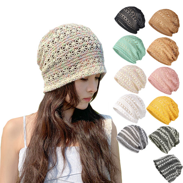 ◆パステルカラーとモノトーンカラーのレースキャップ◆粗めの編み状で透け感があるので通気性に優れ、熱がこもりません◆やや大きめな作りで締め付け感が無くルーズ目シルエットとなります。◆普段使い、ルームキャップ、ケアキャップと使えます