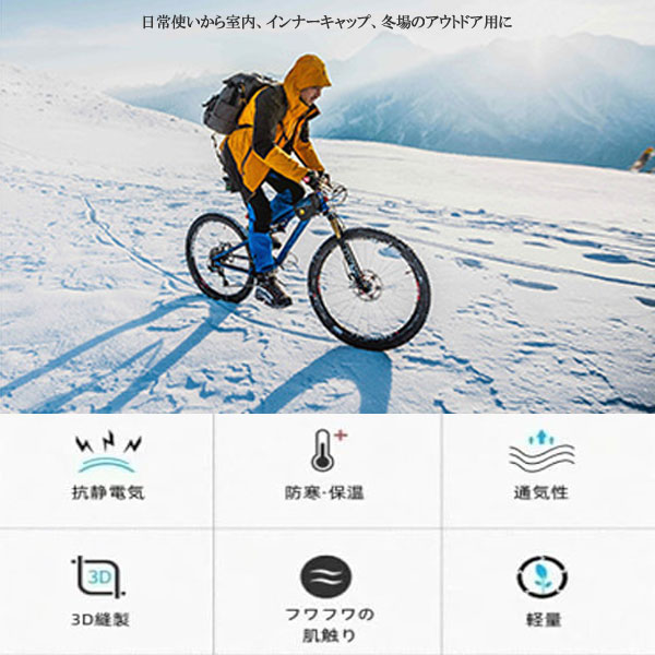 ◆フリース素材のフワフワインナーキャップ、軽量・保温・速乾と日常使いにアウトドア用にとお使いいただけます◆もちろん室内での防寒対策にも!さっと被れる手軽さです◆ゆったり設計ではないのでぴったり目に被り隙間がないことで暖かさを保ちます◆頭、耳を冷たい風から守り、冬、朝と晩の防寒対策としておすすめです。