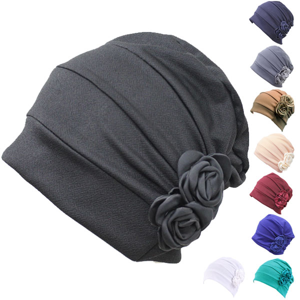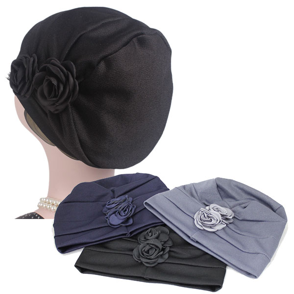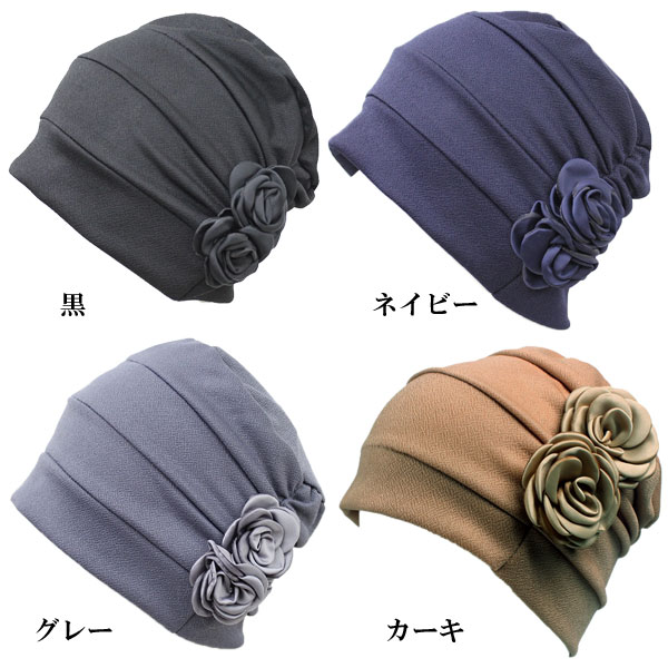 ◆花飾りがアクセント、ナチュラルな風合いとハリのある質感のレディースキャップ。◆伸縮性があって被り心地がよく、医療用帽子として、脱毛、薄毛、抗がん剤治療の方にもご愛用いただいております。◆手洗いができ、急な外出、来客時にサッとかぶれて、とっても便利。被っていることを忘れてしまいそうな軽量さで長時間使用してもOK、アウトドアでも携帯が便利。