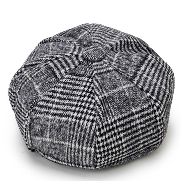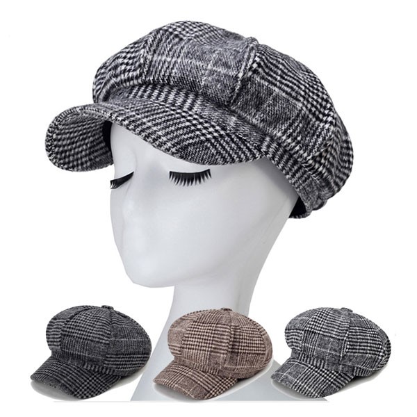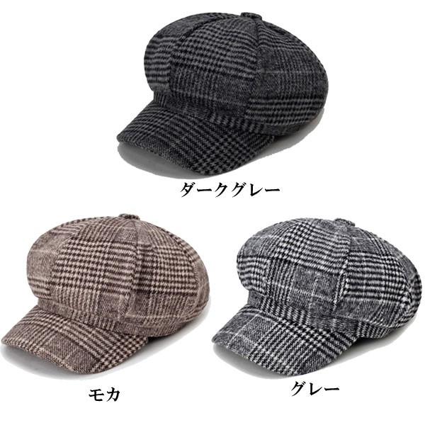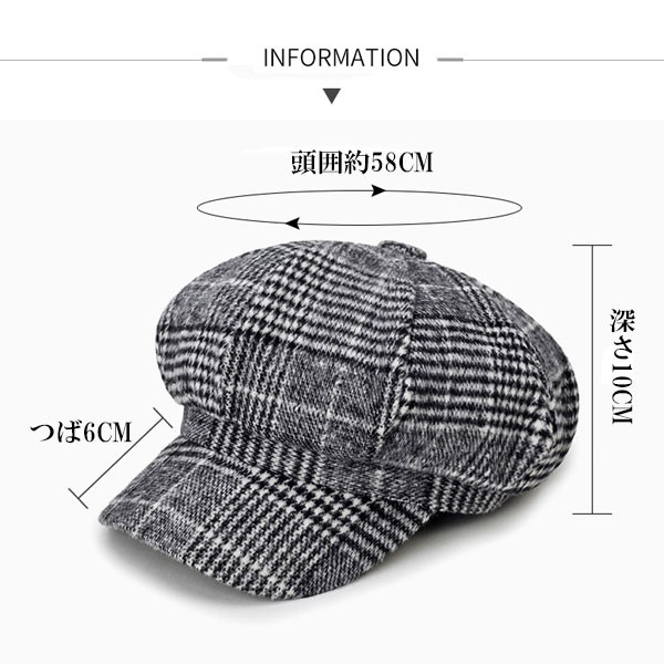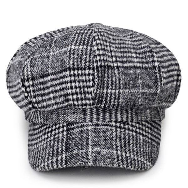 ◆格子柄の厚手レトロ風キャスケット帽。メンズレディース兼用!◆ツバ・ふちに芯が入っており、しっかりシルエットをキープ!
