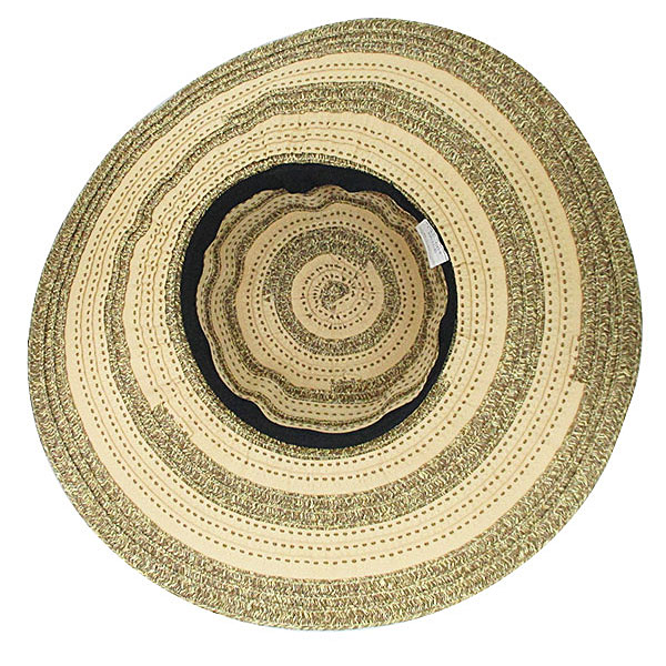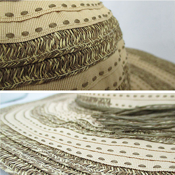 ◆ストローと布帛のミックス縫製、ステッチとバイカラーが特徴なレトロ風麦わら帽子・レディースハット。◆つばの縁にワイヤー入りでお好きな形に曲げられます。◆折り畳めるので、携帯収納も便利!