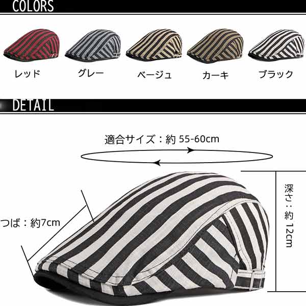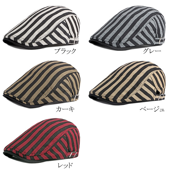 | トレンドワード | 帽子 キャップ ハンチング 春 夏 ストライプ柄 通気性 サイドベルト付き ハンチング帽 キャスケット ハンチング帽子 HUNTING CAP メンズ レディース |