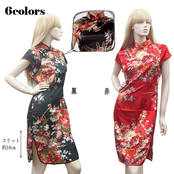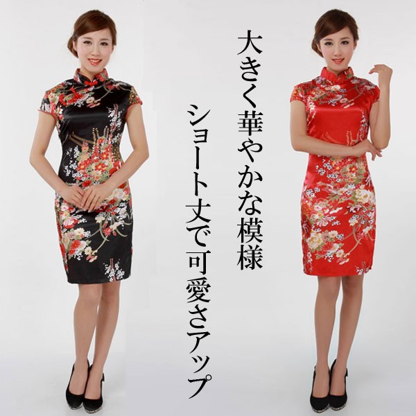 ◆華やかな上品な花草柄が施されたショート丈のチャイナドレス!◆柔らかな生地で動きやすい、普段使いから、パーティー、二次会、コスプレにもお勧め!