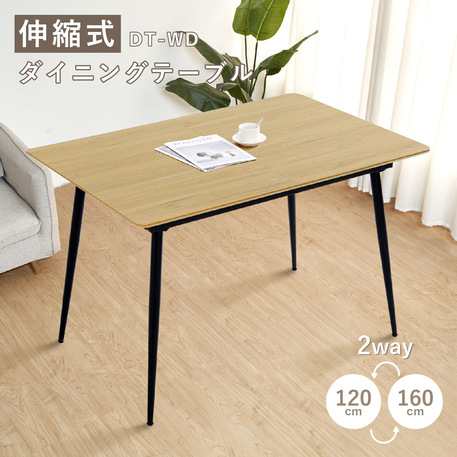 ダイニングテーブル 伸長式 2人掛け 〜 8人掛け 伸縮 木目調 テーブル 食卓 おしゃれ 北欧 モダン 幅120cm〜160cm 高さ75cm ナチュラル 1年保証 E-WIN