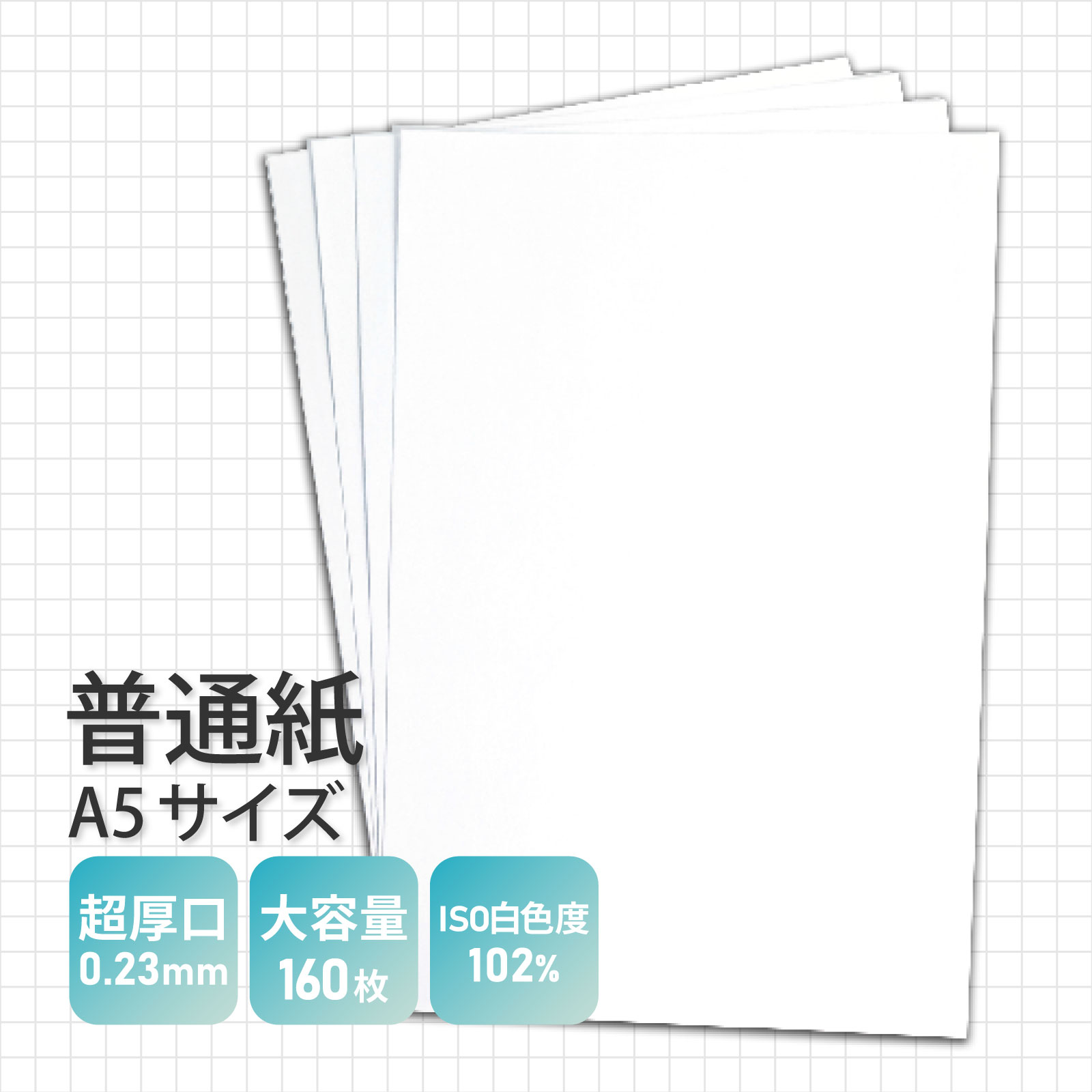普通紙 A5サイズ 紙厚0.23mm 160枚入り 白 厚手 超厚口 コピー用紙 インクジェット レーザー 両面印刷 ISO白色度102% 大容量 ケント紙 上質紙 無地 FA-A5-160
