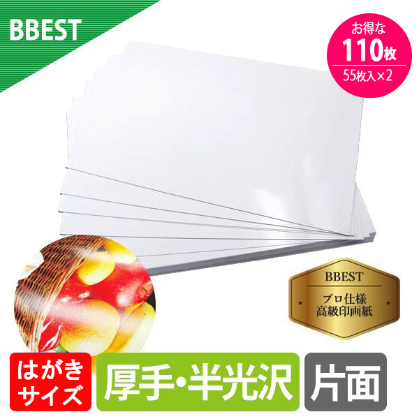 写真用紙 半光沢紙 はがきサイズ 印画紙 RCフォト用紙 厚0.27mm 110枚 厚手絹目調 フォト用紙 インクジェット用紙 片面印刷 プリンター用紙 写真印刷 BBEST