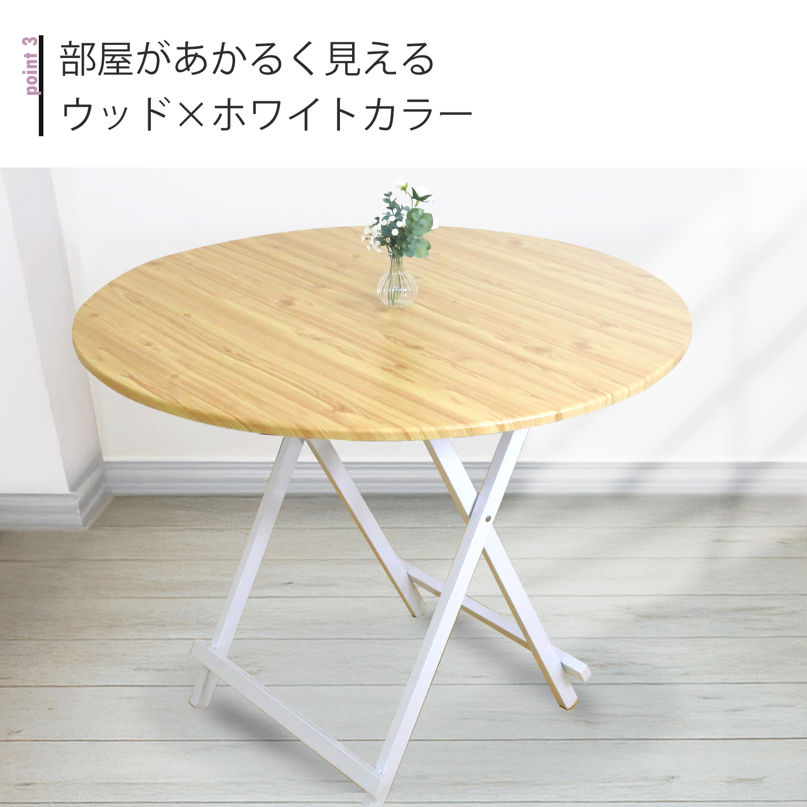 【組立いらず!届いてすぐ使える折りたたみ丸テーブル】