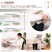 昇降式サイドテーブル ガス圧式 無段階 角度調整 高さ調整 キャスター付き 幅80 差し込み 白 ホワイト ソファーサイド ベッドサイド コの字