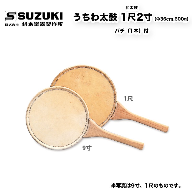 鈴木楽器製作所 うちわ太鼓(うちわだいこ)1尺2寸(Φ36cm,600g) バチ(1本)付 団扇太鼓 / 送料無料 / スズキ SUZUKI