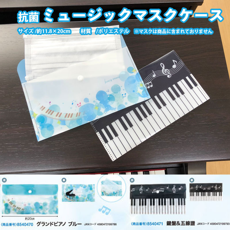 抗菌ミュージックマスクケース 音楽・ピアノ柄のマスクケース