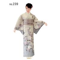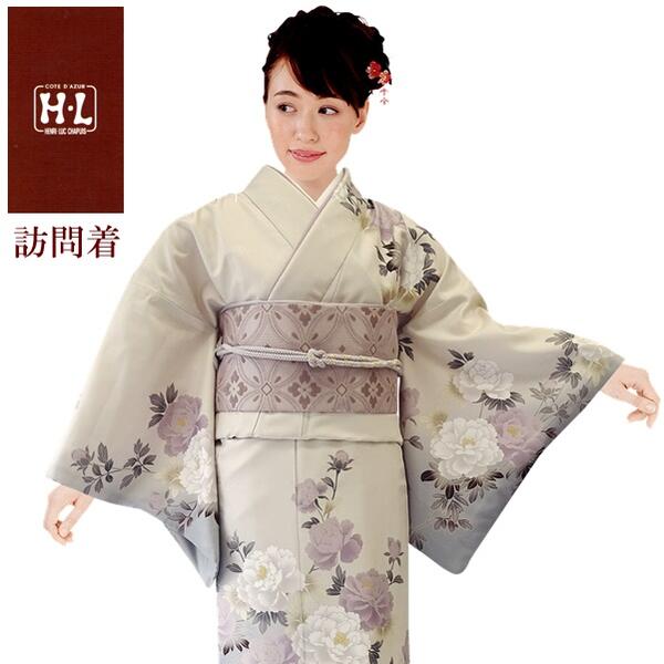 【H.L訪問着 3点セット】グレージュ系花柄【239-S】洗える着物 ダスティカラー【E】