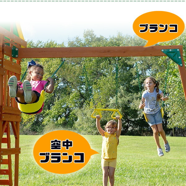 | | ブランコ、すべり台、はしごなど…いろいろな遊びができる木製スイングセット