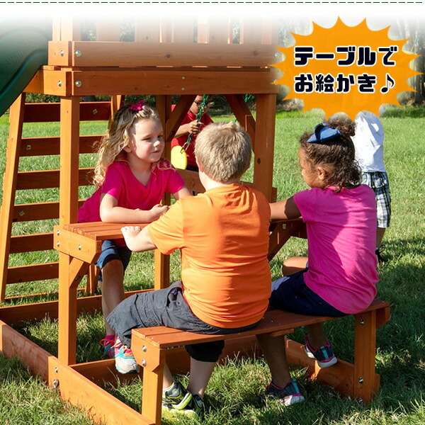 ・ブランコ×2 ・空中ブランコ ・ウェーブスライダー(長さ約244cm) ・はしご ・テーブル&ベンチ