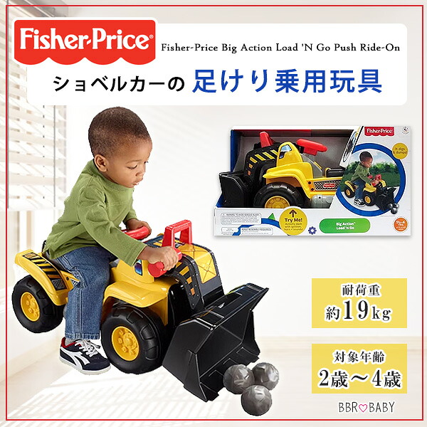 フィッシャープライス ビッグ アクション ロード アンド ゴー プッシュ ライドオン ショベルカー ユンボ 働く車 足けり 乗用玩具 コンビカー 操縦 砂遊び 砂場 雪遊び 庭 屋外 屋内 室内 外遊び 道具 子供用 キッズ 遊具