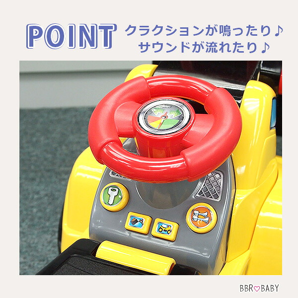 クラクションが鳴ったり、サウンドが流れたり楽しい機能付き♪