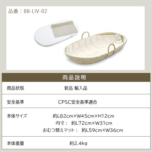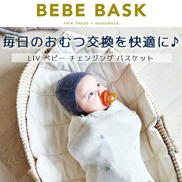 BEBE BASK LIV ベビー チェンジング バスケット おむつ替え かご 籠 オムツ交換 おむつ交換 敷きマット 敷きパッド おむつ替えマット シート パッド 天然素材 ハンドメイド オーガニック 新生児 赤ちゃん ベビー BEBE BASK LIV Baby Changing Basket