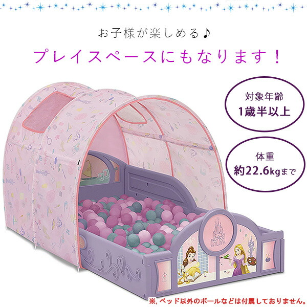 デルタチルドレン ディズニー プリンセス スリープ and プレイ テント付き 幼児用ベッド シンデレラ ラプンツェル ベル モアナ 子供用 子ども用 幼児用 女の子 テント ベッド ボールプール 子供用家具 Delta Children Disney Princess Toddler Bed with Tent