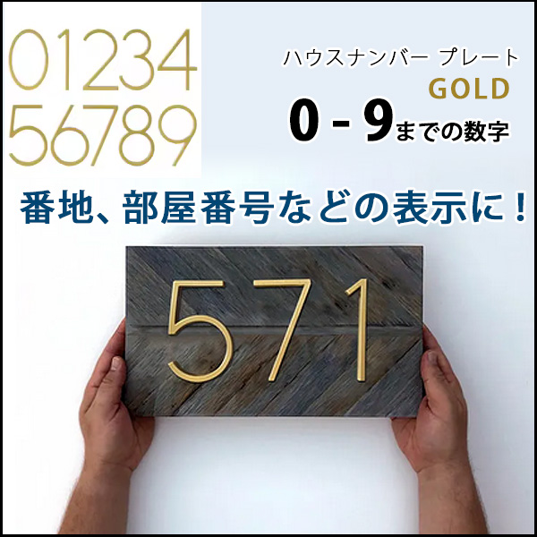 /お取り寄せ/ハウスナンバー ゴールド ドアプレート 番地 家屋 部屋 番号 表札 12.5cm 海外風 アレンジ モダン おしゃれ