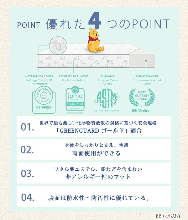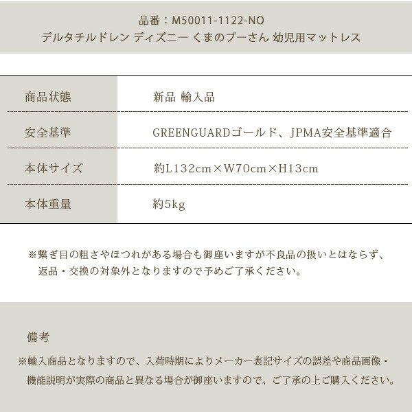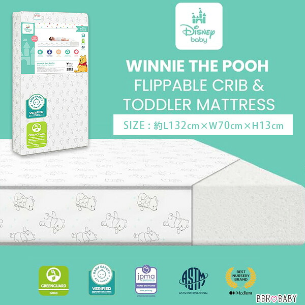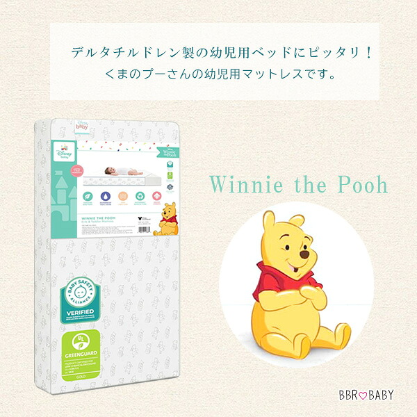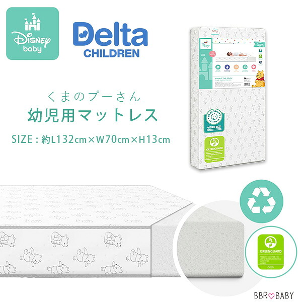 デルタチルドレン ディズニー くまのプーさん 幼児用 マットレス 幅70cm 防水 防汚 両面使用可 リバーシブル ベビー ベッド ノンコイル GREENGUARDゴールド