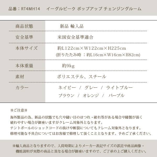 イーグルピーク ポップアップ チェンジングルーム テント スクリーンタープ インスタントテント タープ 着替え 更衣室 プール 海水浴 耐久性 丈夫 キャンプ ビーチ アウトドア 簡易