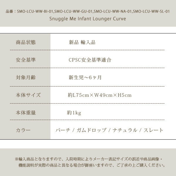 /お取り寄せ/スナグル ミー インファント ラウンジャー カーブ カバー付 トラベルバッグ付 新生児 ベビー用品 寝具 新生児ベッド 日本未上陸 ベビーネスト オーガニック コットン100% 洗濯可 背中スイッチ 赤ちゃん Snuggle Me Infant Lounger Curve