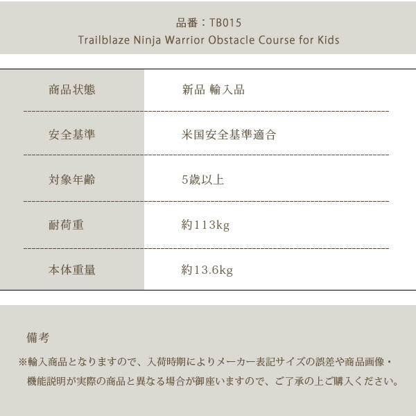 トレイルブレイズ ニンジャ ウォーリアー オブスタクル コース 障害物 アスレチック DIY アドベンチャー アクティビティ 屋外 遊具 庭 子供 運動
