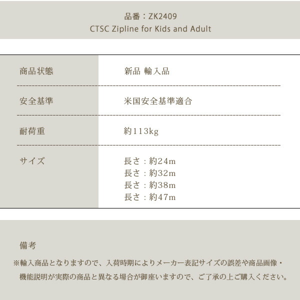 /お取り寄せ/CTSC ジップライン キット アンカー ZIP-LINE 屋外 家庭用 自宅 外遊び 庭 キッズ 子供 遊具 自然 キャンプ場 アスレチック アウトドア スポーツ