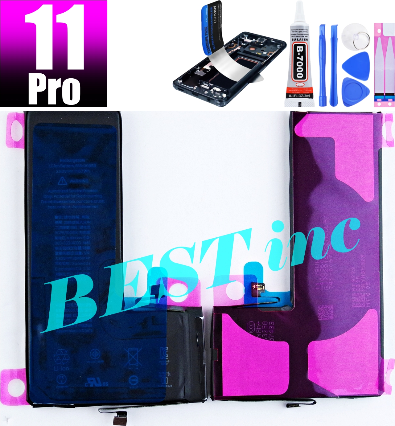 互換品【 新品 】iPhone 11 Pro / PSEマーク / アップル Apple アイフォン 616-00659 バッテリー容量:3046mAh 電圧制限:3.83V 工具両面テープ別売