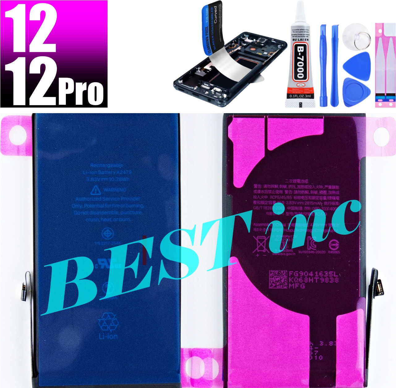 互換品【 新品 】iPhone 12 / 12 Pro / PSEマーク / アップル Apple アイフォン A2479 バッテリー容量:2815mAh 電圧制限:3.83V 工具両面テープ別売