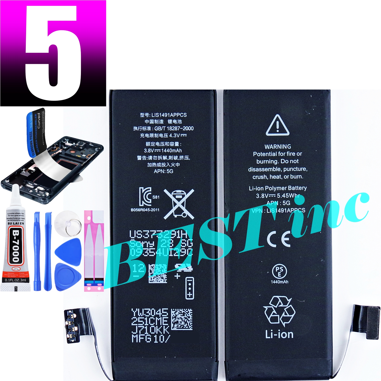 互換品【 新品 】iPhone5 / PSEマーク / Apple LIS1491APPCS 616-0613 バッテリー容量:1440mAh 電圧制限:3.8V 工具両面テープ別売