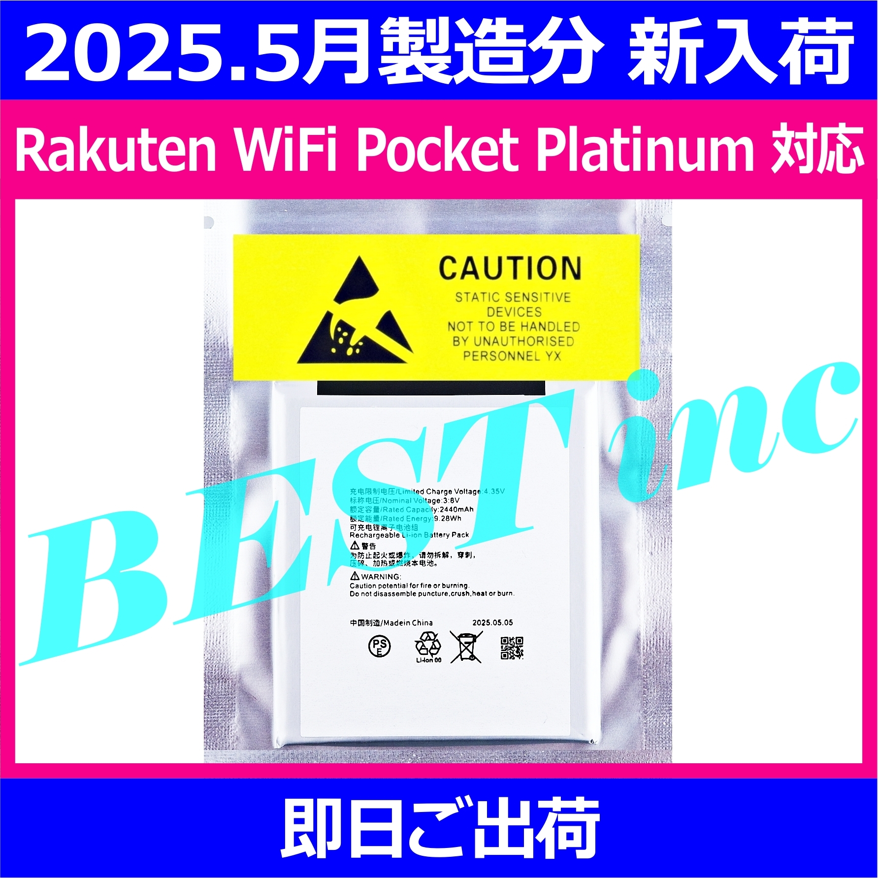 互換品・1個< 新品 >Rakuten WiFi Pocket Platinum / T99W541 楽天モバイル ワイファイポケットプラチナム バッテリー容量:2440mAh 電圧制限:3.8V
