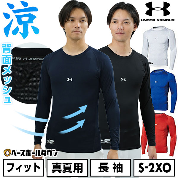 野球 アンダーシャツ 大人 長袖 丸首 フィット アンダーアーマー ヒートギアアーマー コンプレッション 抗菌防臭 1358646 アンダーシャツ名入れ有料可(U)