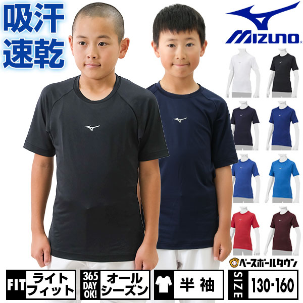 ●MIZUNO ミズノ おすすめ 人気 ジュニア用 少年用 子供用 子ども用 こども用 学童用 小学生 小学校 中学生 中学校 アンダーウエア 野球アンダー インナーシャツ インナーウェア スポーツウエア トレーニングウエア 半袖Tシャツ 半そで ショートスリーブ 丸首 ローネック クルーネック ストレッチ 伸縮 伸びる ライトフィット ゆるピタ