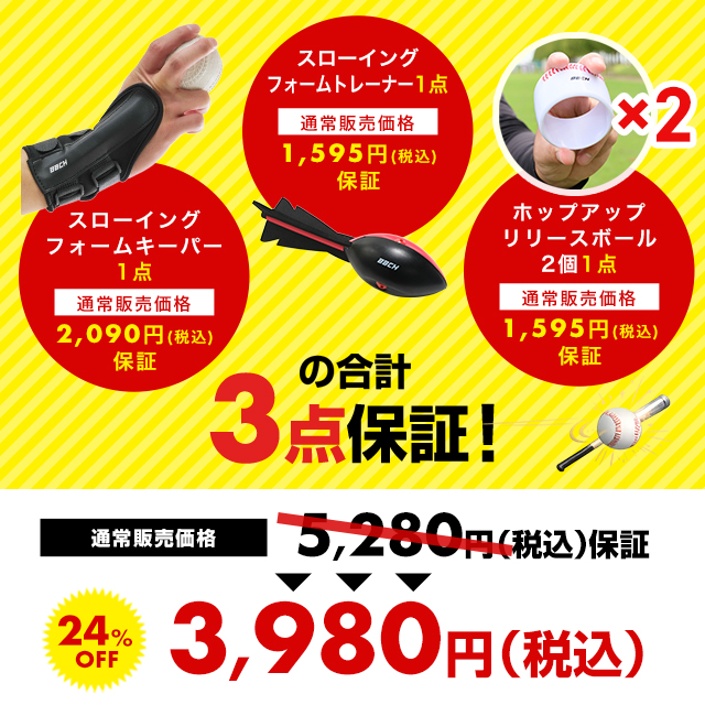 野球 練習 これで打たれない!入団準備スターターキット スローイングフォームキーパー+スローイングフォームトレーナー+ホップアップリリースボール2個 BBCH