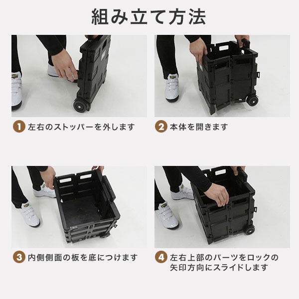 キャスター付きで移動ラクラク、しかもワンタッチで折りたためて、車のトランクや倉庫にもスッキリ収納できます。