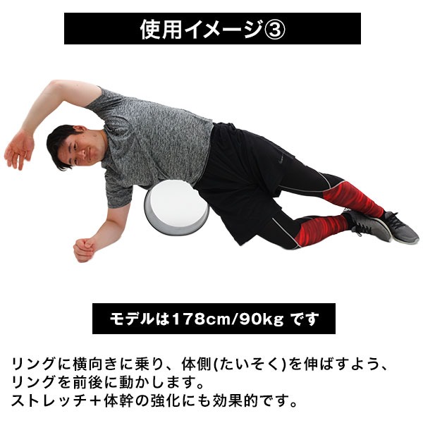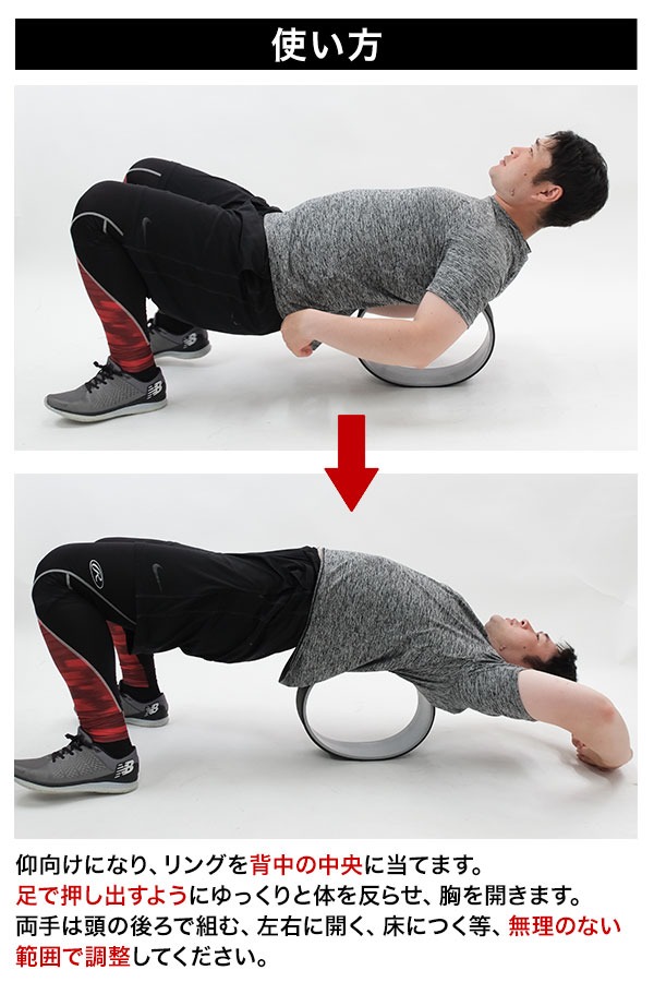 仰向けになり、リングを背中の中央に当てます。