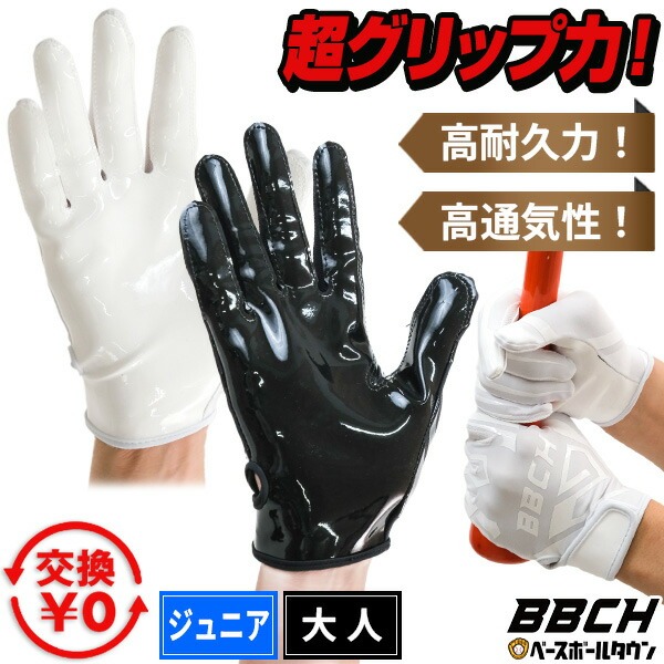 交換無料 野球 パワーグリップマスター バッティンググローブ グラブ 一般 大人 ジュニア 白 黒 両手 バッティング手袋 高校野球対応 キッズ 少年 BBCH