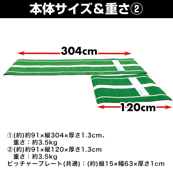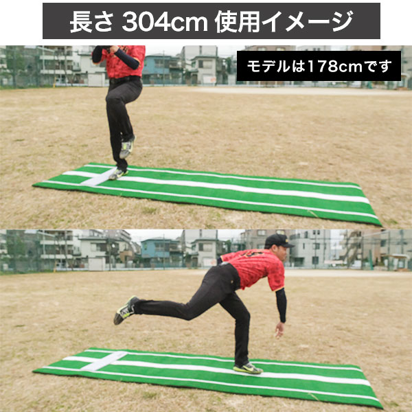 ■304cm × 90cm:マウンドからホームまでのラインをしっかり意識できる本格仕様。フォーム・コントロール練習に最適。