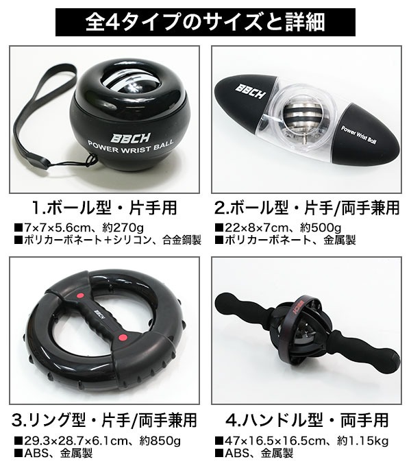 パワーリストボール 片手/両手/リング/ハンドルタイプ パワーボール スナップボール ジャイロ 握力 筋トレ 腕力 野球 練習 室内 部屋 大人 男女兼用 コア BBCH