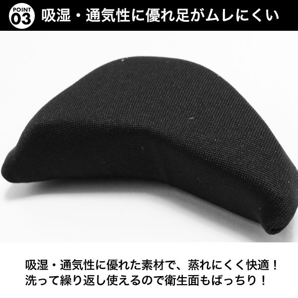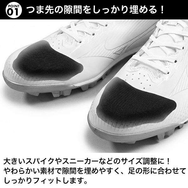 スパイクやトレーニングシューズ、運動靴などに入れるだけで、フィット感を高め、シューズ内での足のズレを防ぎます。