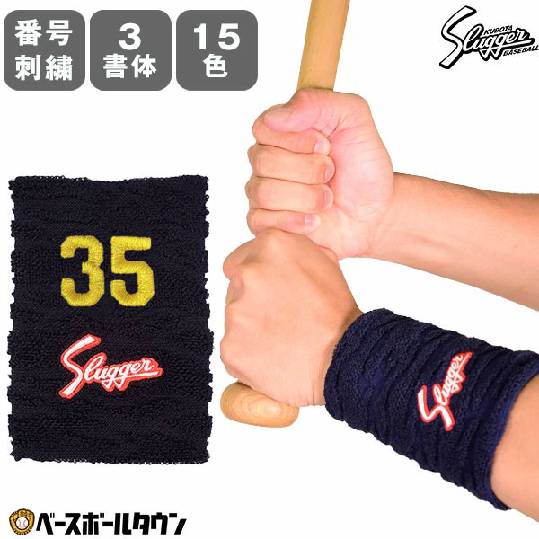 文字刺繍代金込み 野球 久保田スラッガー リストバンド 片手用 13cm 縦型 S-37 スポーツ 番号刺繍(2ケタまで) 背番号 加工可能(N)