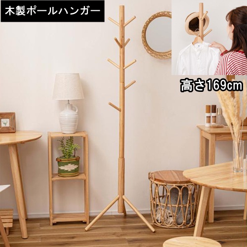 ポールハンガー 木製 ハンガーポール 服かけ かばん掛けポール 高さ169cm コートハンガー スリム HOW-007NA