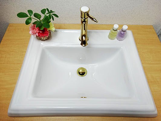 洗面ボウル おしゃれ 陶器 オーバーカウンター 埋め込み リフォーム スクエア 四角 幅59cm INK-0402003H