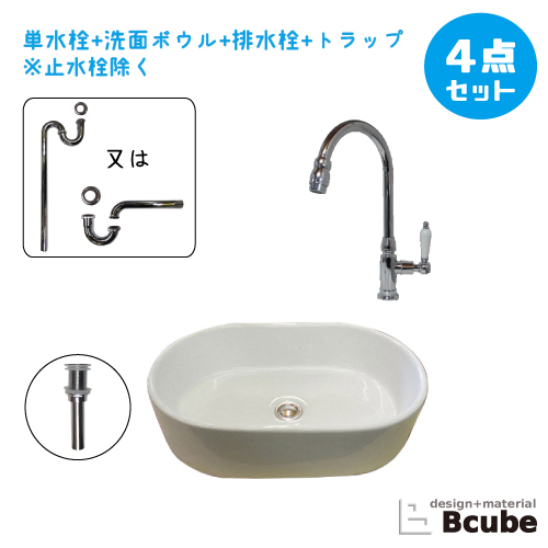 洗面台 560 交換 洗面ボウル 置き型 セット おしゃれ 保証付き 陶器製 大きい 大きめ リフォーム 蛇口 水栓 綺麗 単水栓 幅56×奥行35×高15cm B-0401002H-SJset12