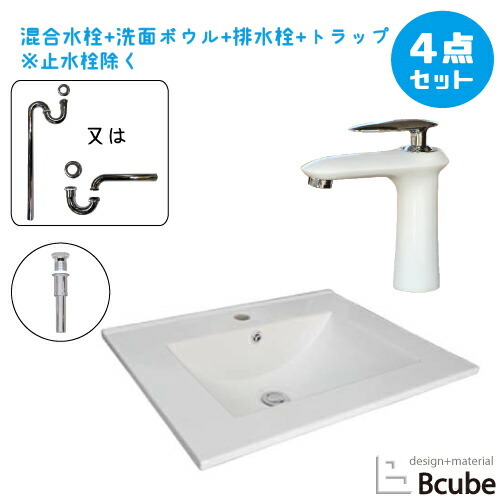 洗面台 おしゃれ 埋め込み型 陶器製 大きい セット 610 洗面ボウル 交換 リフォーム 4点セット 混合水栓 四角型 幅61cm B-0402001HJset129
