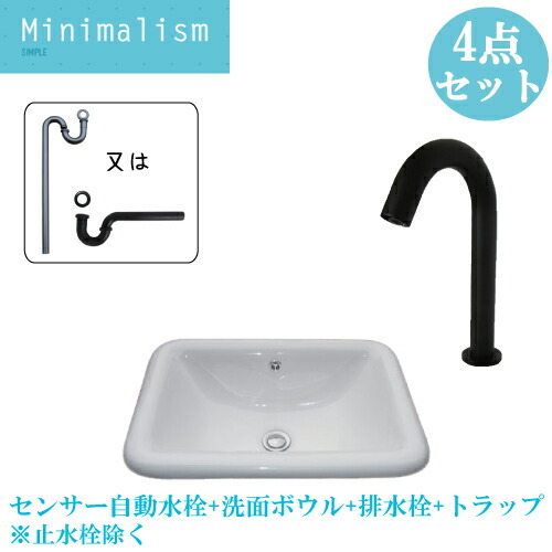 手洗い器 洗面所 洗面ボウル 自動水栓 セット 4点 おしゃれ 埋め込み型 陶器 洗面台 センサー 蛇口 リフォーム 単水栓 W550 D390 H200 B-0402004HSset406